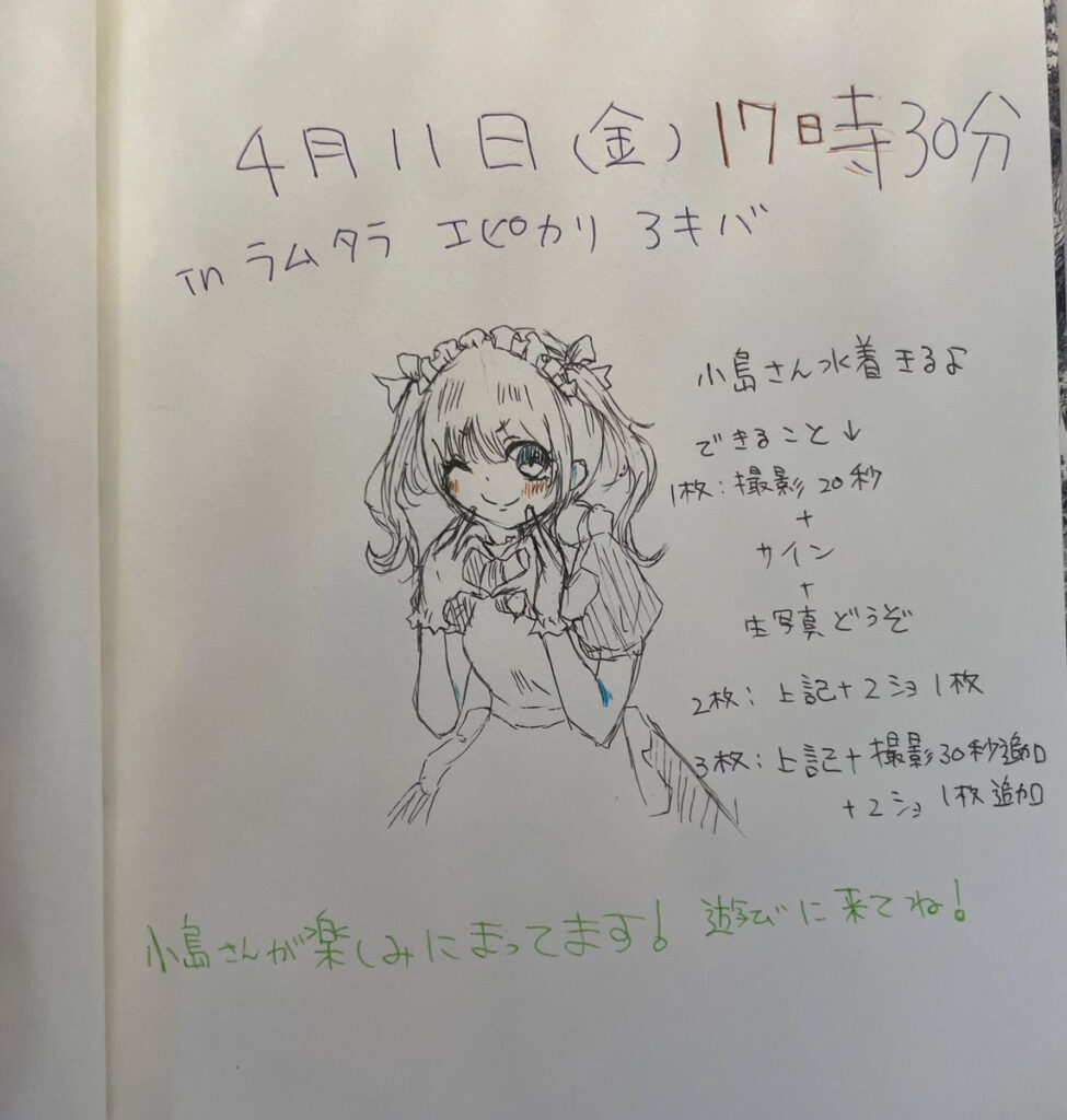 特にふたりが開催したスク水カフェというイベントは大盛況。3部制でスク水、コスプレ、ビキニと着替えてカフェサービスするイベントですが、お絵かきオムライス、2ショットチェキ、さらにはおまじないまでかけてくれる大サービスっぷりの神コラボイベントでした。